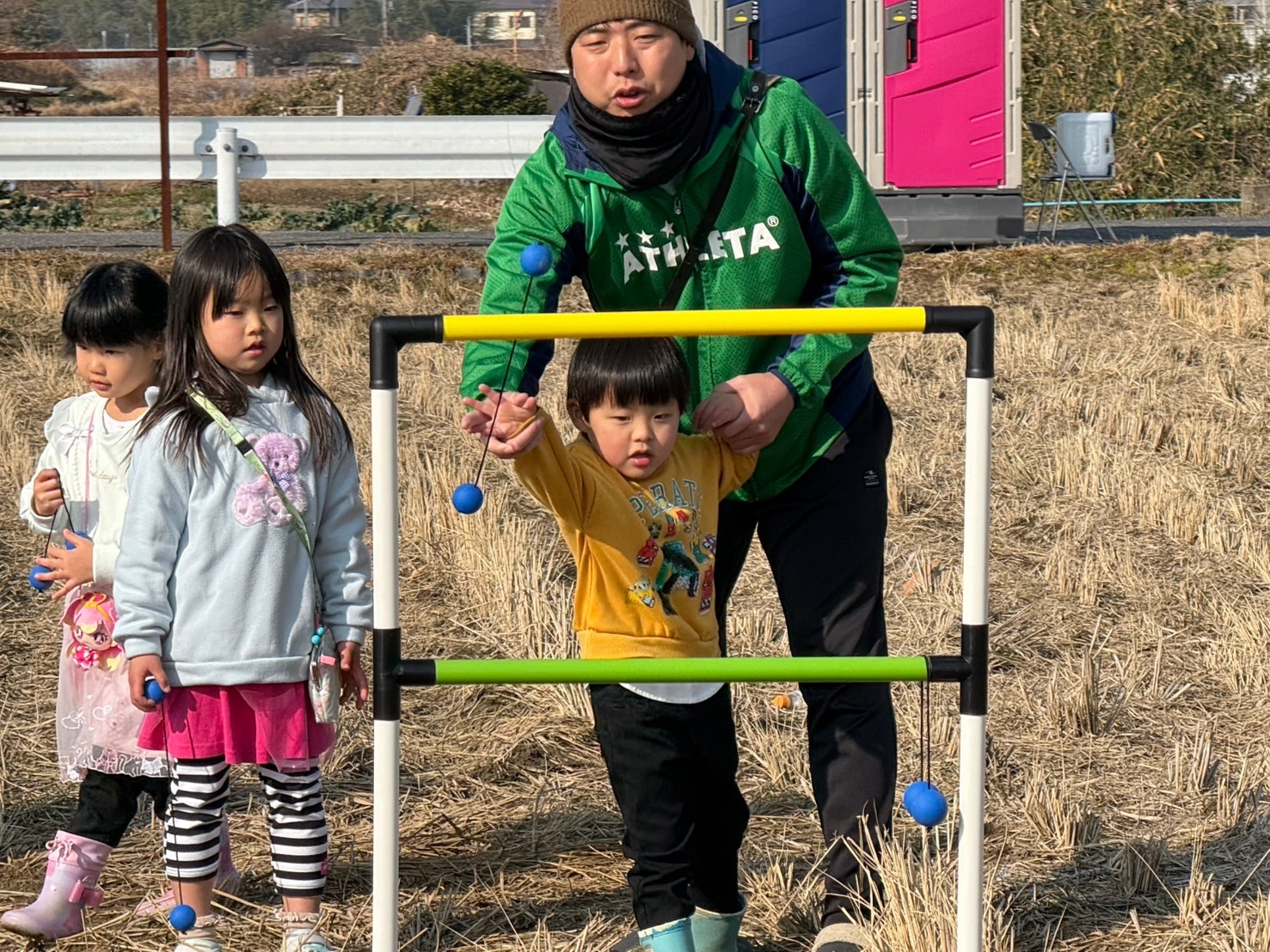 田んぼ運動会&マルシェを開催しました 田んぼ運動会&マルシェを開催しました 2025年2月1日 子育て応援団 田んぼを使って行う運動会と、休憩時間に楽しむマルシェで寒さを吹き飛ばす一日。運動会は、大盛り上がりでした。熱い熱戦で、暑いぐらいの温まる一日でした。 ご来場いただいた皆様、ありがとうございました。 写真ギャラリー 種植え三目ならべ ラダーボール ラダーボール ダーボール